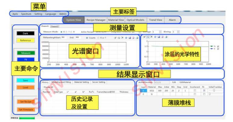 當(dāng)特定波長的光通過不同的的材料(不同的厚度、密度、成分)時(shí),經(jīng)過表面及內(nèi)部多次反射之后形成的光譜條紋是完全不一樣的,系統(tǒng)通過分析所接收到的反射光的光譜干涉條紋特性,與系統(tǒng)庫中的光譜曲線進(jìn)行匹配和對比,同時(shí)進(jìn)行特征曲線的仿真和擬合,進(jìn)而對每種不同成分厚度的涂層進(jìn)行在線測量。
